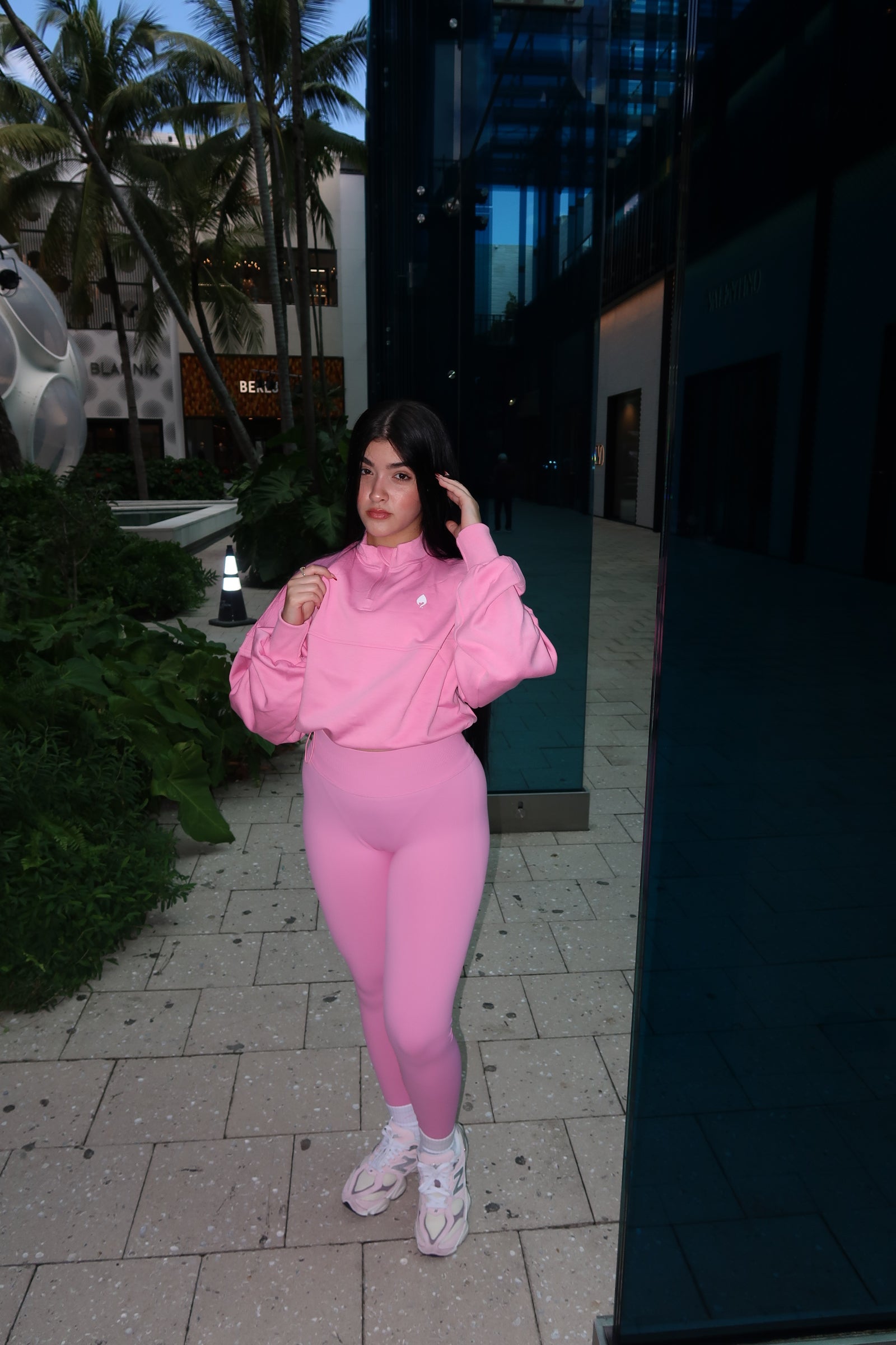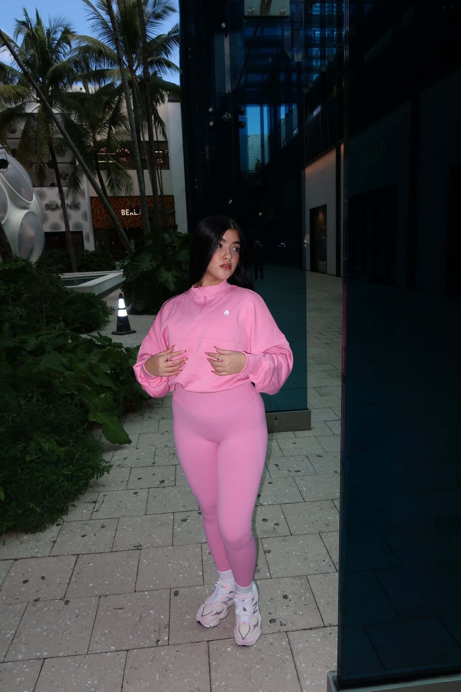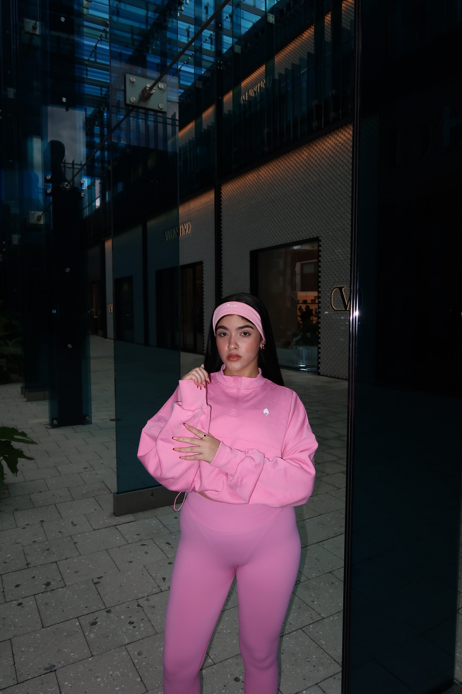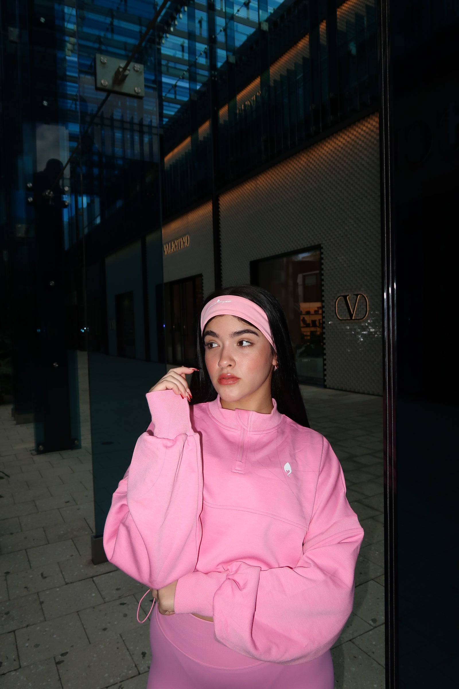 Este suéter deportivo de corte crop te ofrece un estilo moderno y una comodidad inigualable. Confeccionado en un vibrante tono rosa, su diseño se centra en un ajuste holgado y relajado que proporciona una gran libertad de movimiento.